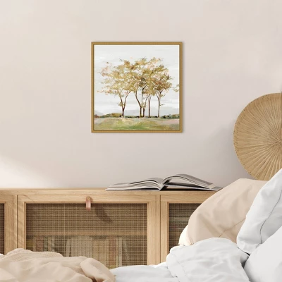 ART DESCRIPTION: In this peaceful scene, a stand of tall, leafy river trees gently waves in the breeze, towering over the serene green meadow below. In the distance, shrubs and hilltops are visible below a cloudy sky. This Amanti Art canvas art print was created by Isabelle Z and printed by Amanti Art in Madison WI. The canvas is stretched by hand and finished with a float frame. Individually made using traditional custom framing techniques, it has the quality you would expect from your local frame shop. Because of our attention to detail and focus on artistry, architects, interior designers, and homeowners alike choose this framed canvas artwork to create beautiful living spaces.