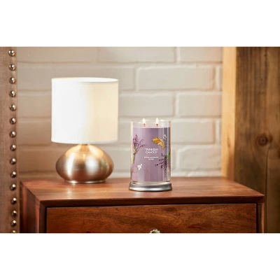 Experience the Yankee Candle® brand, totally reimagined. A fresh take on our Tumbler shape features a brushed tin lid that fits neatly under the base to serve as a candle coaster. Two cotton wicks and a premium soy-wax blend provide a clean burn. Hand-illustrated labels and vibrant wax colors are perfectly matched with Collection-exclusive and tried-and-true fragrances to create an inspired addition to your home. The Dried Lavender & Oak Fragrance takes you to a farmer’s market where hand tied bunches of lavender mill about the woodsy scents and spices.