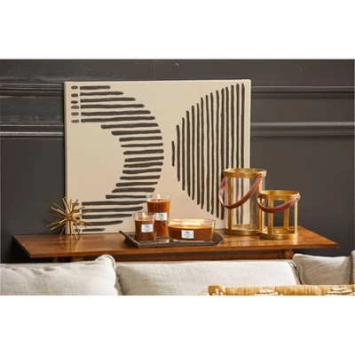 Fill your curated home with the rich, nuanced scents and the distinctive, iconic look of the Woodwick Large Hourglass Candle with a wooden lid. The Pluswick® Innovation wooden wick enhances the sensory experience with a distinctive crackle and intriguing glow. The WoodWick Sand & Driftwood fragrance will fill your home with a medley of aged tobacco leaves, aged leather and ambered musk.