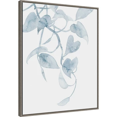 ART DESCRIPTION: Draping from the top of the frame, the branches of the houseplants wave and sway through this piece of art. With simple brushstrokes and a monochromatic color palette, the emphasis is placed on the shapes of the leaves. This Amanti Art canvas art print was created by Grace Popp and printed by Amanti Art in Madison WI. The canvas is stretched by hand and finished with a float frame. Individually made using traditional custom framing techniques, it has the quality you would expect from your local frame shop. Because of our attention to detail and focus on artistry, architects, interior designers, and homeowners alike choose this framed canvas artwork to create beautiful living spaces.