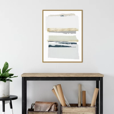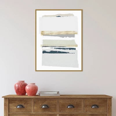 ART DESCRIPTION: Showy colors and busy art need not be present to draw the attention of the eye or mind. This abstract piece relies on simple brushstrokes, both wide and narrow, to create immense visual interest. The hues contained within the piece stick to subdued and neutral gray, beige, brown and navy. This Amanti Art canvas art print was created by PI Studio and printed by Amanti Art in Madison WI. The canvas is stretched by hand and finished with a float frame. Individually made using traditional custom framing techniques, it has the quality you would expect from your local frame shop. Because of our attention to detail and focus on artistry, architects, interior designers, and homeowners alike choose this framed canvas artwork to create beautiful living spaces.