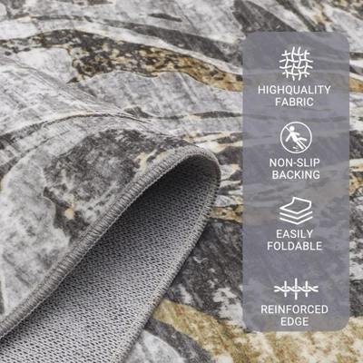 1.Modern Abstract Design Artistic grey patterns create visual interest and depth Neutral color palette complements minimalist, contemporary, and transitional decor Delicate edge detailing enhances the rug’s refined appearance 2.Low Pile & Lightweight 0.25″ pile height ensures a sleek, unobtrusive profile Breathable fabric keeps the rug cool and comfortable underfoot Easy to move and reposition for flexible room layouts 3.Durable & Non-Shedding High-quality polyester fibers resist shedding and wear Sturdy construction maintains shape even in high-traffic areas Ideal for homes with kids and pets 4.Easy to Clean & Maintain Stain-resistant surface repels spills for quick cleanup Vacuum-friendly design prevents dirt buildup Spot clean or professional cleaning recommended 5.Versatile for Any Space Perfect for living rooms, bedrooms, and entryways Adds warmth and texture to bathrooms Complements modern and eclectic decor styles