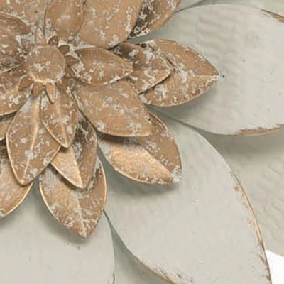 - Style: The metal wall lotus flower features layered metal petals with a distressed metallic finish that adds a rustic contemporary feel to any room in your home.