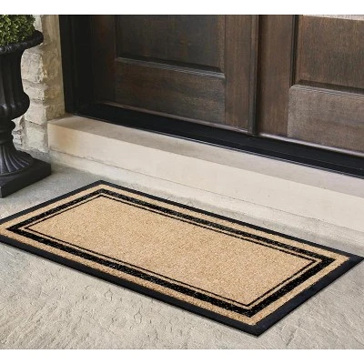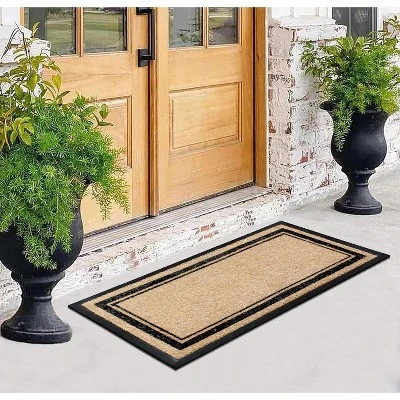 - NEWLY DEVELOPED FLOCKED RUBBER AND COIR DOOR MAT: This is a completely newly designed door mat; The main design is Hand Flocked. Flocking enhances the beauty and also gives longer life to the printed area. suitable for double doors. The large size outdoor front door mats are made of Natural coir fiber and high-quality rubber. This coir door mat has a large coir area to clean and wipe your shoes which keeps your house clean. Rubber and Coir door mats are stronger and more durable lasting longer than regular door mats.