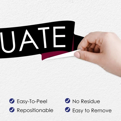 Maroon Grad – Best is Yet to Come Wall Decals Backdrop includes 1 sheet of vinyl wall stickers that include letters and shape pieces that form the perfect Burgundy Congrats backdrop for your Graduation Party. Wall Decal sheet measures 50 inches wide by 16.5 inches tall. Pieces range in size from 30 x 6.5 inches to 3.25 x 3 inches. Effortless Decor: The Maroon Grad – Best is Yet to Come stickers are an easy DIY party decoration that will make a big impact at your celebration. Stick them on a flat wall surface to create that picture-perfect setting and then grab your camera to capture all the fun. Easy to Use: Maroon Grad – Best is Yet to Come vinyl decals are easy-to-peel and repositionable. Wall art stickers will adhere to various surfaces including painted walls, plastic, wood, glass, and metal. To use, make sure your surface is clean and dry. Slowly peel the sticker from the paper to avoid tearing and smooth over with your hand. They are also easy to remove, leaving no residue. High-Quality Supply: Maroon Grad – Best is Yet to Come wall stickers come with a quality matte finish and vibrant colors. They are printed on water-resistant professional quality material and will arrive on one full sheet rolled. Made In The USA: Maroon Grad – Best is Yet to Come Wall Decals are designed and manufactured at our Wisconsin facility using materials that are Made in the USA.