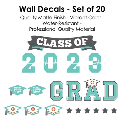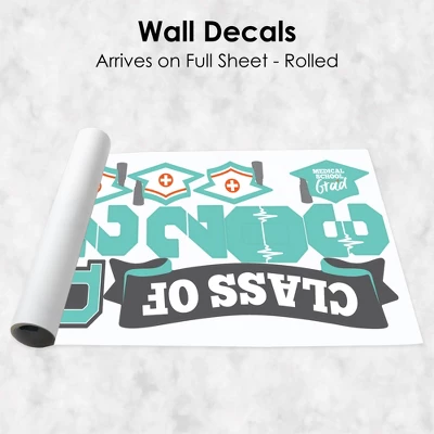 Big Dot of Happiness Medical School Grad Wall Decals includes 1 sheet of 20 assorted vinyl wall art stickers that you can arrange to add a special touch to your home decor. Wall Decal sheet measures 50″ wide by 16.5″ tall. Pieces range in size from 26.5 x 5.75″ to 2.5 x 2.5″. Effortless Decor: The Teal Med Grad wall stickers are an easy solution for bringing in some added charm to your space within minutes! You can use the wall decals for party or celebration rooms, impressive photo backdrops, or as easy decor at your Doctor Graduation Party. Easy to Use: Medical School Grad vinyl decals are easy-to-peel and repositionable. Wall art stickers will adhere to various surfaces including painted walls, plastic, wood, glass, and metal. To use, make sure your surface is clean and dry. Slowly peel the sticker from the paper to avoid tearing and smooth over with your hand. They are also easy to remove, leaving no residue. High-Quality Supply: Medical School Grad wall stickers come with a quality matte finish and vibrant colors. They are printed on water-resistant professional quality material and will arrive on one full sheet rolled. Made In The USA: Teal Med Grad Wall Decals are designed and manufactured at our Wisconsin facility using materials that are Made in the USA.