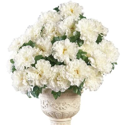 These beautiful flowers are the perfect way to add instant color indoors or outside. The set includes 3 full bunches of zinnias in your choice of red, white, gold, orange or multicolor. They’re perfect to display in your pots or baskets (not incl.), or stake them into the ground in your garden. Use separately for smaller bouquets or all together for a bold and beautiful arrangement (as shown). Plastic and polyester. Each bunch is approx. 10″Dia. x 17″H. Set of 3. Choose: Red, Gold, White, Orange or Multi.