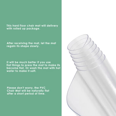 This is our new PVC floor chair Mat, which is perfect for protecting your floors from damage, wear and tear. It is ideal for all areas of the office and home. Made of premium PVC material, this chair mat is durable and can be used for many years. The transparent appearance makes it seamlessly fit a variety of lines and colors floor. One side of the mat is non-slip with lines, the other side is smooth surface without lines. Buy yours today!