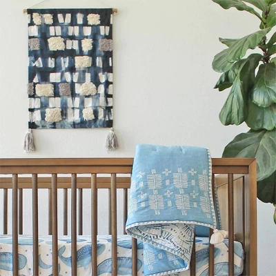 Crafted by hand our unique wall hangings add the perfect accent of color and artisanal style to your nursery. Combine with our Crane Baby bedding designs to create an eclectic and curated look. Thoughtfully and ethically sourced.
