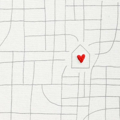 - Cheerfully and simply represents the bond of love; Sentiment reads “All roads lead to home”; Design is drawn in pencil and hand-stitched