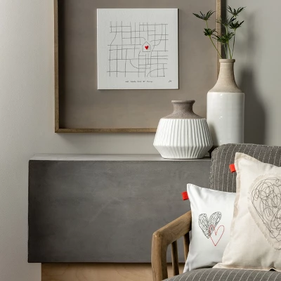 The All Roads Lead to Home Large Wall Art is a minimalistic but whimsical representation of home and family. Artist Johannah Miller achieves intricate balance within the lines of the beautifully minimalistic Crossroads Collection. Pen and ink illustrations mix with hand-stitched thread on artisan paper detailing life’s intersections of faith, home and love. The raw edges and gray washed look add to the artisan feel of this wall art. Drawn in pencil and hand stitched. Keyhole hanger. Hang in your home where family gatherings are held or give to someone to tell them what they mean to you. Sentiment: All roads lead to home Sentiment: All roads lead to home