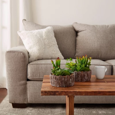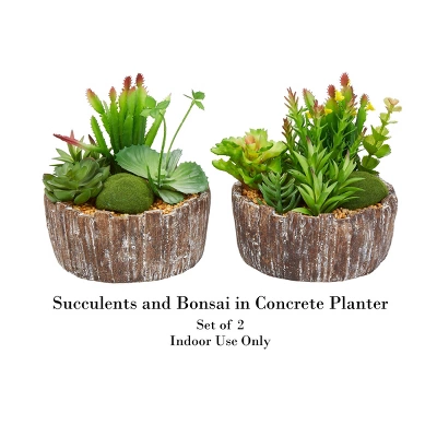 Enjoy beautiful greenery all year long with the assorted 2-Piece Faux Succulent Arrangement by Pure Garden. These artificial plants are great for busy folks who want a bit of color and greenery in their home, but don’t have time to care for living plants. The plants are made of polyethylene plastic to appear more realistic than other artificial greenery. The plants come in a concrete planter for rustic charm. Each succulent and pot space is generously sized to add beauty to any room in your home and they make ideal gifts for housewarming parties, weddings or holidays.