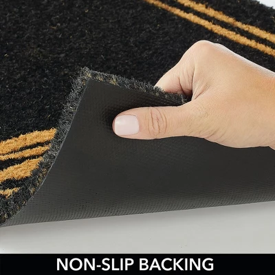Make your guests feel welcomed into your home with this Entryway Doormat by mDesign. Its stiff coir fibers and heavy backing give it ample weight and stability to stay in place right in front of your entrance door in windy and rainy conditions. The script writing adds a touch of flair to this mat while the neutral color scheme easily complements any outdoor and entryway decor. Whether used in the mudroom, front or back door entryways, its heavy construction stands up to light or heavy traffic and is easy to maintain.