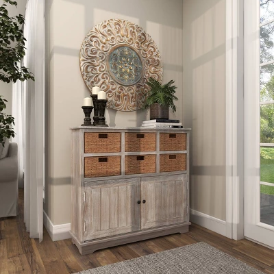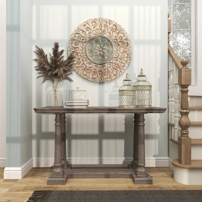 - This wall plaque decor comes in a round profile with elaborate flower, leaves, and vine carvings