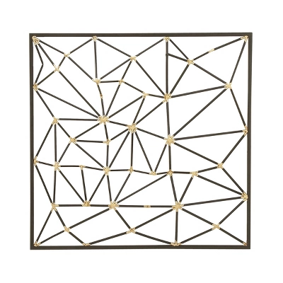 - This metal geometric wall decor has a square-shaped frame with geometric-patterned details