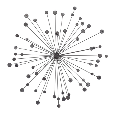 Make an instance home refresh with this silver starburst wall art for an eye catching focal point. This item ships in 1 carton. A multi-locational decor with wall mounted and vertical orientation feature. Can be hung vertically using the keyholes on the back; nails and screws not included. Suitable for indoor use only. This item ships fully assembled in one piece. This is a single silver colored wall sculptures. Contemporary style.