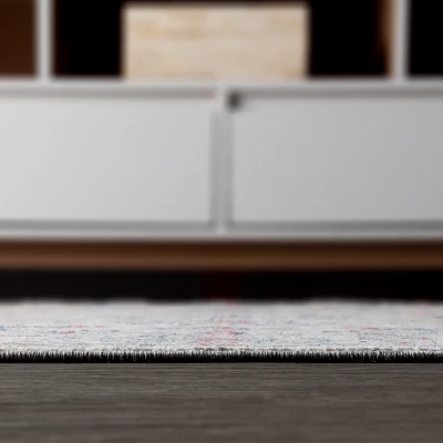 - The gray base is accented with notes of pink and blue throughout the Persian-inspired design