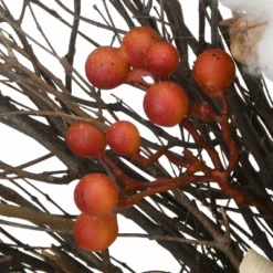 This Halloween garland features black branches that are mixed with fiber optic light tips that glow in purple and orange colors. Located on the garland light string is a control box where a button can be pushed to cycle through eight different light functions including steady on, flashing and fading variations. A remote control is also included to operate light functions. Hang this garland over door, wall or railing to add a dazzling light show to your Halloween decorating scheme.