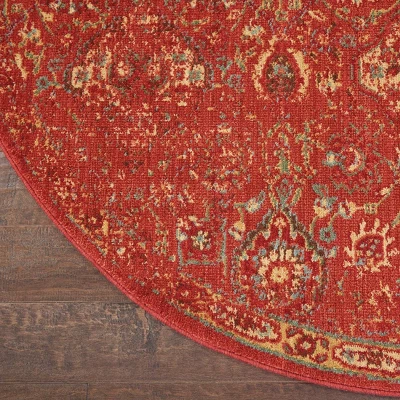 Deeply distressed patterns on a rich red field give this Somerset Collection rug an unmistakable elegance and Old World allure. Traditional designs in pale green and gold patterns are surrounded with an ornate border, with a look and feel of ancient Persian rugs. The perfect exotic accent for any room, woven from easy-care fibers for exceptional quality and durability.