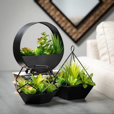 Add some life to your personal space with these beautiful succulent arrangements. With lush, natural greens and convenient, uniquely shaped matte black planters, these plants are perfect for any surface in your home. Over the last 55 years, Sullivans has become an industry leader in home decorations. Our brand is rooted in tradition while incorporating modernized trends to keep your home looking up to date with timeless style. Here at Sullivans, we pride ourselves on creating product designs focused on quality and value, ensuring that our customers have access to beautiful products at reasonable price points.
