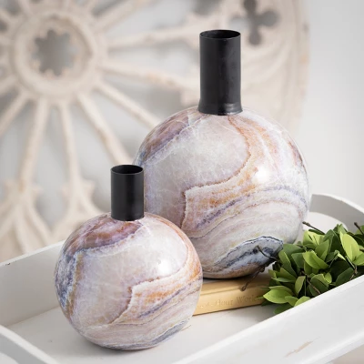 With traditional appeal and stylish presence, this pair of creamy-colored medallions make a bold statement on any wall. Measuring in diameter of 36″ and 28″ respectively, these hanging metal embellishments fit wonderfully in any type of decor. Over the last 55 years, Sullivans has become an industry leader in home decorations. Our brand is rooted in tradition while incorporating modernized trends to keep your home looking up to date with timeless style. Here at Sullivans, we pride ourselves on creating product designs focused on quality and value, ensuring that our customers have access to beautiful products at reasonable price points.