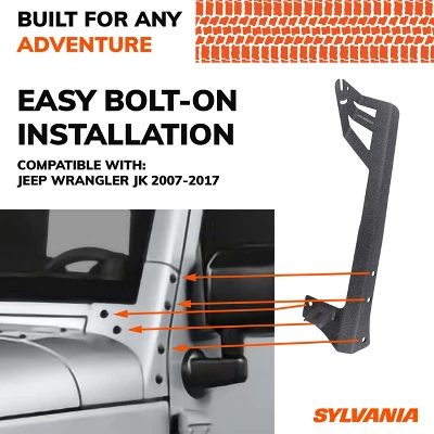 Style: 50″ A-Pillar Mounting Brackets compatible with Jeep Wranglers You’ve picked out your favorite SYLVANIA LED light bars or pods, but how do you mount it all to your Jeep Wrangler without drilling? Make large lightbar mounting easier with the low profile and heavy-duty SYLVANIA 50″ A-Pillar Jeep Wrangler Mounting Brackets. The kit includes 2 fitted foam gaskets to protect your Jeep’s paint and mounting screws to securely your light bar up top and a pair of light pods at the bottom. OFF-ROAD: light bars and light pods for trucks, Boats, SUV, UTV, atv, Snowmobile, Motorcycles, Dirt Bikes, 4×4, 4WD, and other car led lights INDUSTRIAL: Forklifts, Trains, Excavators, Lawn Mowers, Snow Blowers, Tractors, Cranes, and other heavy duty equipment OTHER Suitable Industries: Fire and Rescue, Military, Agricultural, Mining, Logging, Construction, and more.