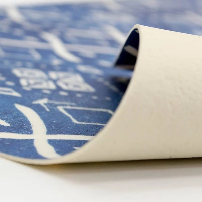 Suddenly bored by your decor? Don’t worry, things are looking up… or rather, looking down. Yes, your floor is now the ideal canvas for expressing your personal style. And this vinyl floor mat brings everything into sharp focus with an exotic pattern of white and indigo. Isn’t it exactly what that bare spot in your hallway has been missing? Or what about the balcony or outside your front door? Highly durable and well designed, it’s fade-resistant, waterproof, certified non-slip, and all the things a top-quality area rug should be. Plus, it’s available in a variety of sizes, making it the perfect art piece for high-traffic areas indoors and out. All sizes are 1 mm thick. Care instructions- Sweep to ensure dust and crumbs are removed and wipe with damp cloth. For stubborn jobs, try diluted hand soap and rinse thoroughly after washing. Do not use dish soap, harsh chemicals or abrasives.