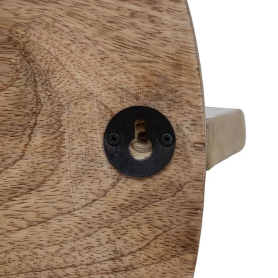 Exclusively designed by Foreside Home & Garden, a simple yet beautiful round wood wall shelf. Made from sustainable natural mango wood. The top half allows the warm tone of the natural wood grain to shine, while the bottom half is heavily whitewashed with routed lines in the classic shiplap style. A single spacious shelf sits at the center, also washed in white. Display your favorite seasonal items, or a stack of books on this shelf in any room in your home.