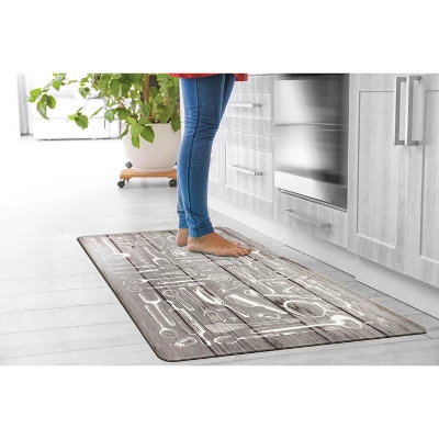 - Multi-purpose:Kitchen mats widely used for home decor,indoor front welcome mat,kitchen rug,laundry room,standing desk,back doors,garage,office. Nonskid backing holds the mat in place for extra safety.
