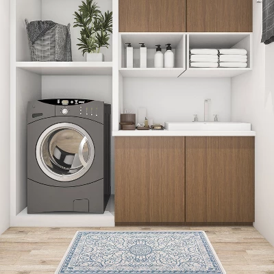 - Multi-purpose:Kitchen mats widely used for home decor,indoor front welcome mat,kitchen rug,laundry room,standing desk,back doors,garage,office. Nonskid backing holds the mat in place for extra safety.
